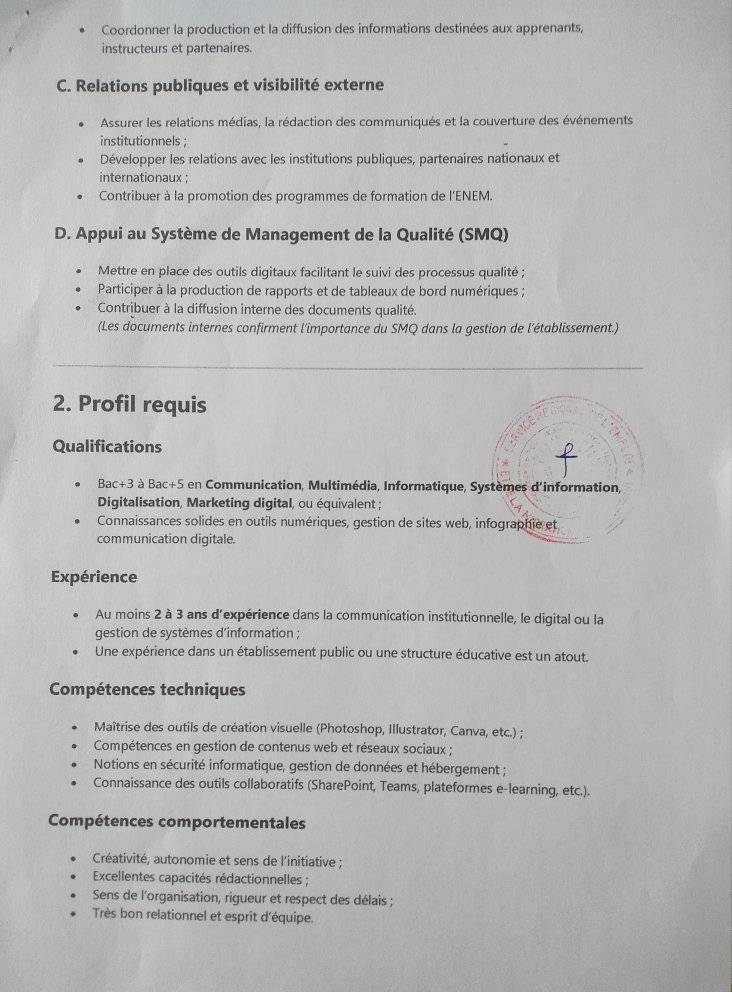 - 01 Chef du Service Digitalisation et de Communication