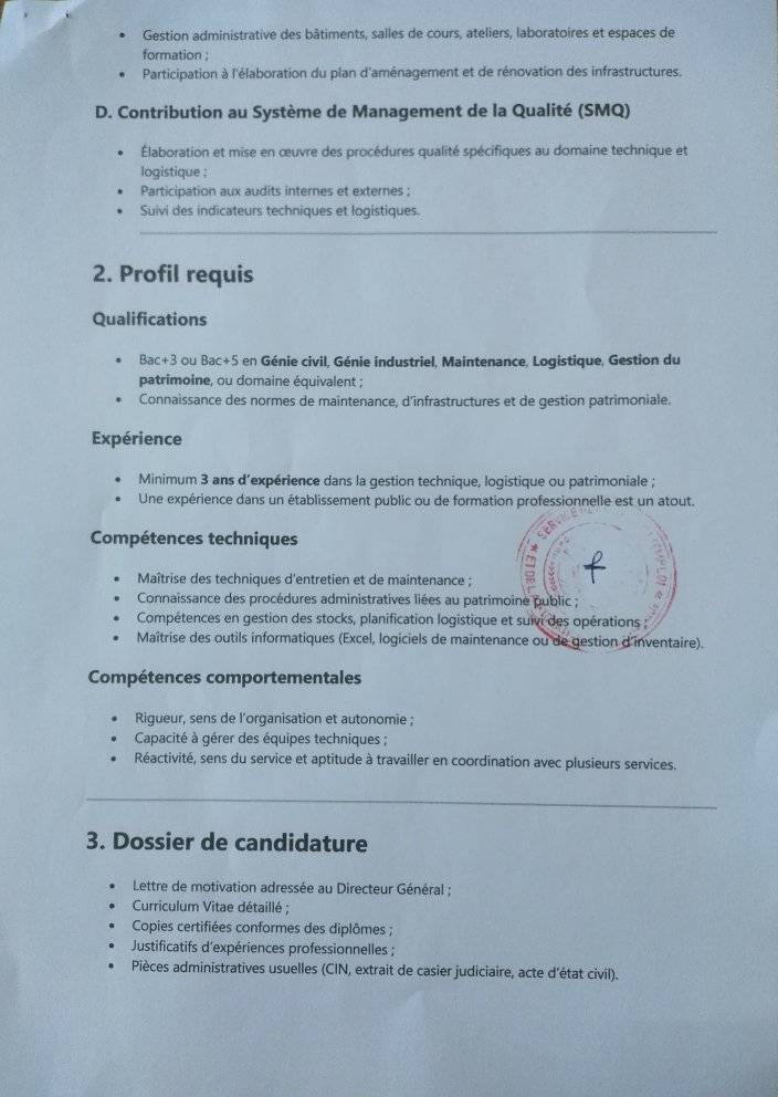 - 01 Chef du Service Technique, de la Logistique et du Patrimoine