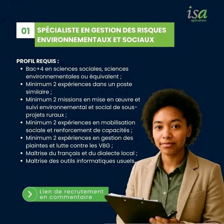 01 Spécialiste en Gestion des Risques Environnementaux et Sociaux