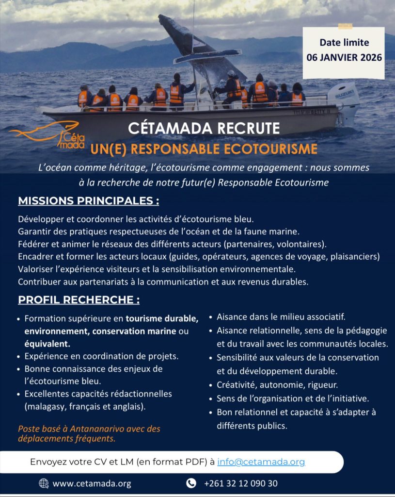Envoyez CV et LM (en précisant l’objet) à l’adresse info@cetamada.org avant le 06 janvier 2026.