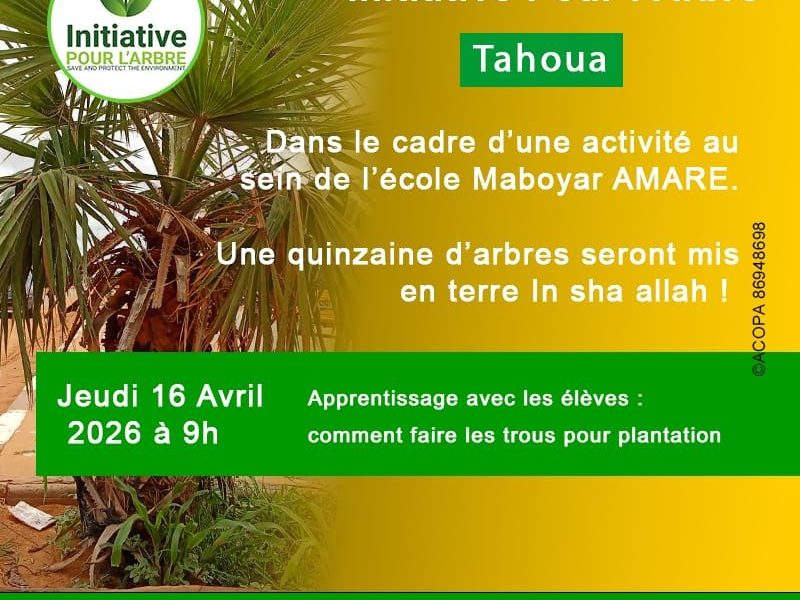 Date et Heure : Jeudi 16 Avril 2026 à partir de 09H00 Lieu : École Maboyar Amare, Tahoua Prix : À propos de l’événement : Tahoua Action de reboisement et sensibilisation à l’École Maboyar Amare La communauté d’impact de l