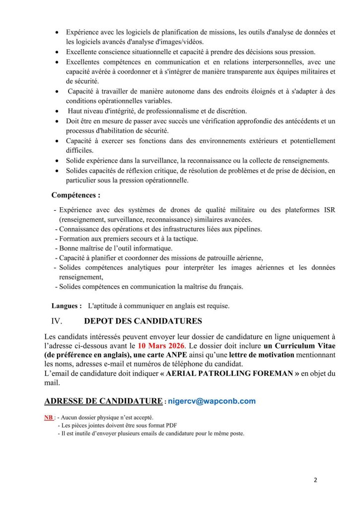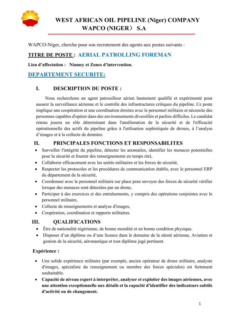 TITRE DE POSTE: AERIAL PATROLLING FOREMAN