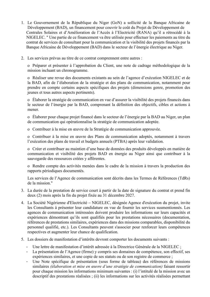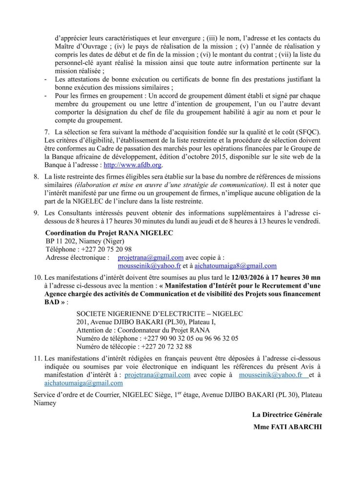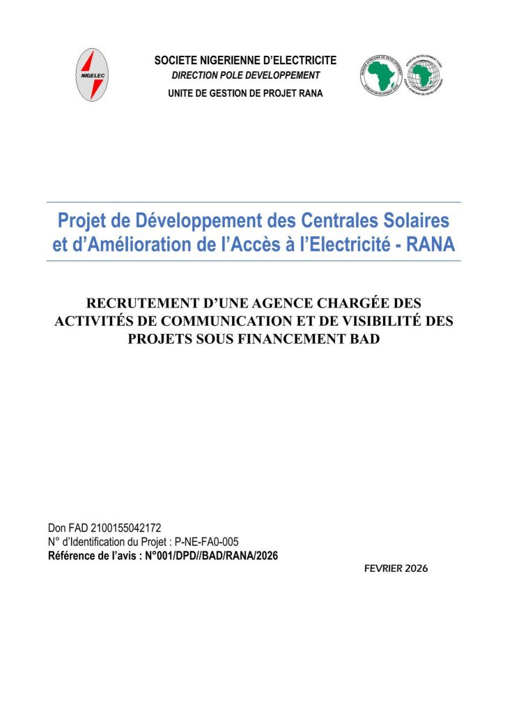 RECRUTEMENT D’UNE AGENCE CHARGÉE DES ACTIVITÉS DE COMMUNICATION ET DE VISIBILITÉ DES PROJETS SOUS FINANCEMENT BAD