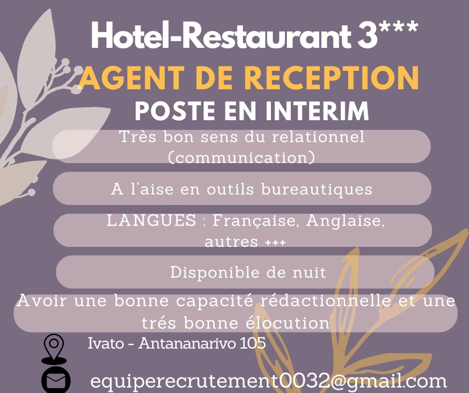 𝐑𝐄𝐂𝐑𝐔𝐓𝐄𝐌𝐄𝐍𝐓 — 𝐀𝐆𝐄𝐍𝐓 𝐃𝐄 𝐑𝐄́𝐂𝐄𝐏𝐓𝐈𝐎𝐍 (𝐇/𝐅)