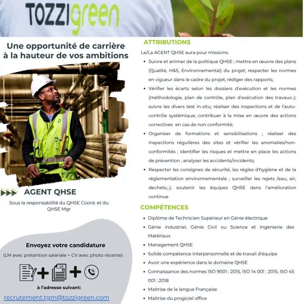 📧Email : Envoyez votre dossier de candidature (LM + CV avec photo récente ) à recrutement.tgm@tozzigreen.com