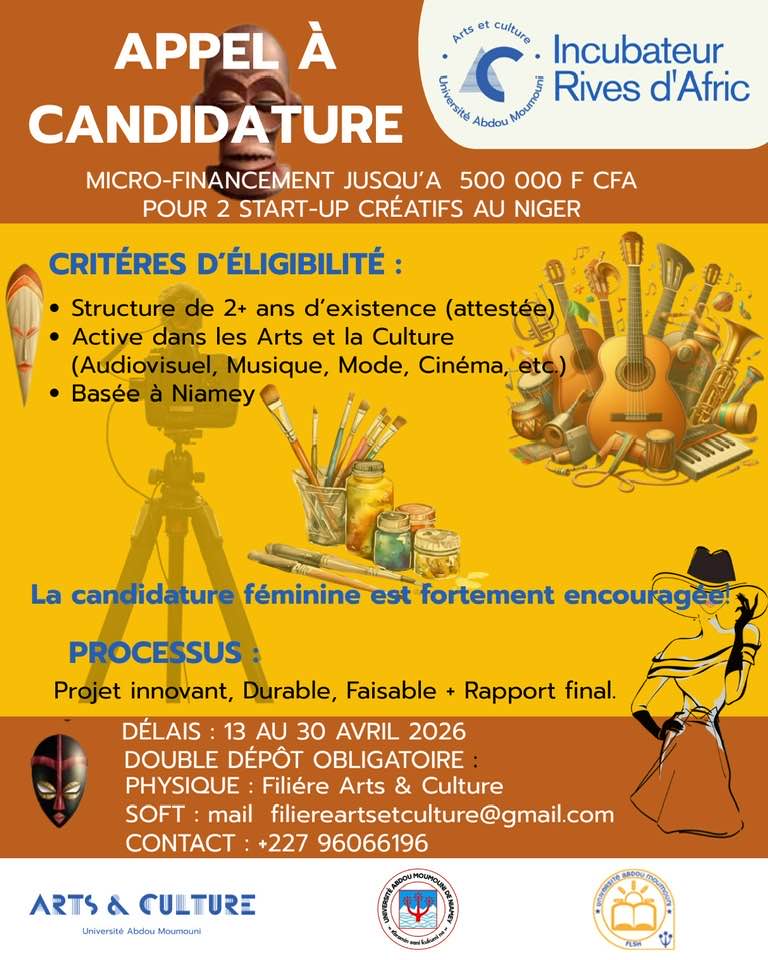 Date limite des dépôts de candidatures : Du 13 au 30 Avril 2026