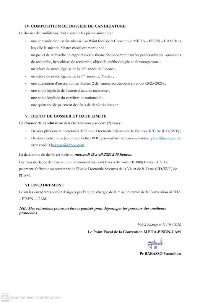 Date limite des dépôts de candidatures : Mercredi 15 Avril 2026 à 18H00