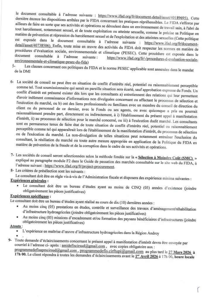 #MINAE#FIDA#Androy#Bekily#AgricultureDurable#GénieRural#ProgrammeDEFIS#AppelDOffres#Eau