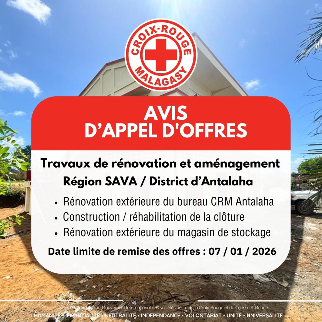 #AppelDOFFRES#Travaux#Antalaha#SAVA#Rénovation#Infrastructure#CRM