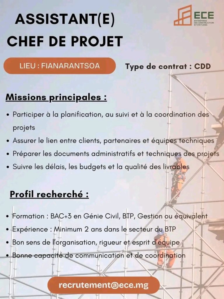 Dans le cadre du renforcement de notre équipe, ECE Madagascar recrute :