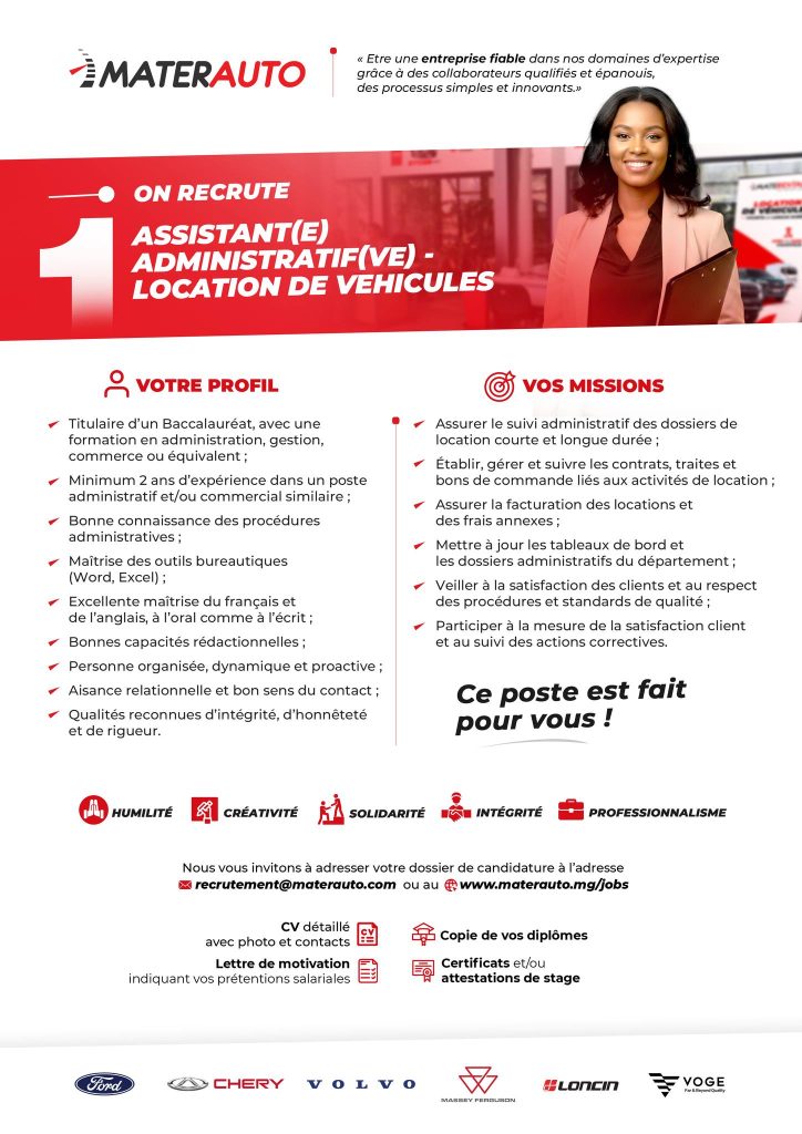 ASSISTANTE(E) ADMINISTRATIF(VE) – LOCATION DE VÉHICULES