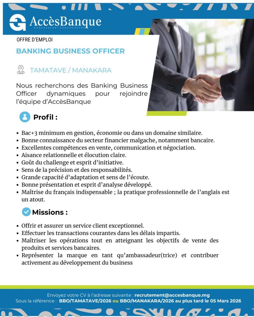 Envoyez vos candidature à : recrutement@accesbanque.mg