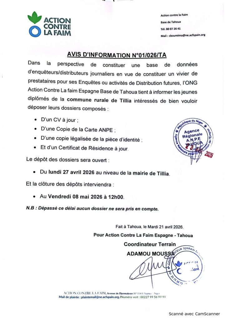 Date de dépôt des candidatures : Vendredi 8 Mai 2026 à 12H00
