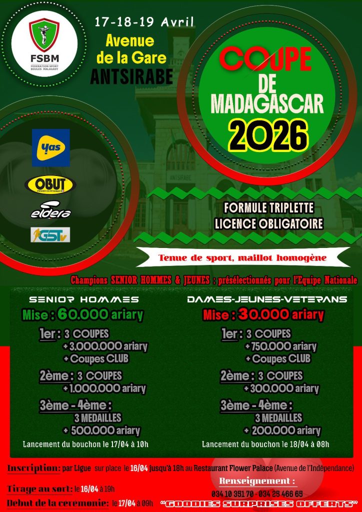 Ho tontosaina ao amin’ny renivohitr’i Vakinankaratra ny 17-18-19 aprily ho avy izao nu “Coupe de Madagascar” sokajy rehetra, olon-telo miaraka.
