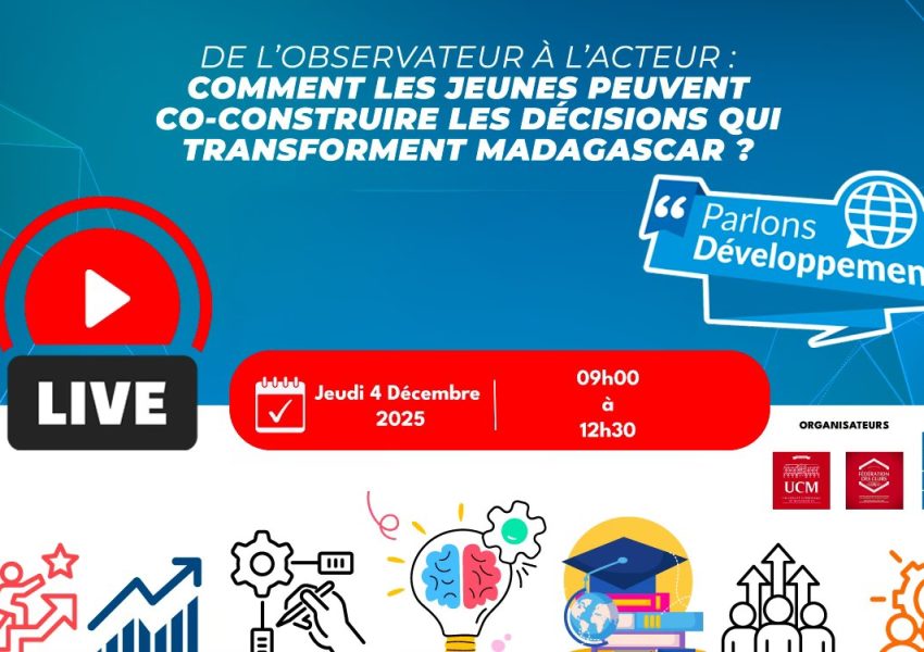 Date et Heure : Vendredi 12 Décembre 2025 de 08H30 à 12H30 Lieu : Bâtiment Plan Anosy, Toliara Prix : À propos de l’événement : 𝐃𝐈𝐀𝐋𝐎𝐆𝐔𝐄 𝐀𝐕𝐄𝐂 𝐋𝐄𝐒 𝐎𝐑𝐆𝐀𝐍𝐈𝐒𝐀𝐓𝐈𝐎𝐍𝐒 𝐃𝐄𝐒 𝐄𝐌𝐏𝐋𝐎𝐘𝐄𝐔𝐑𝐒 Dans le cadre de la Refondation de la République