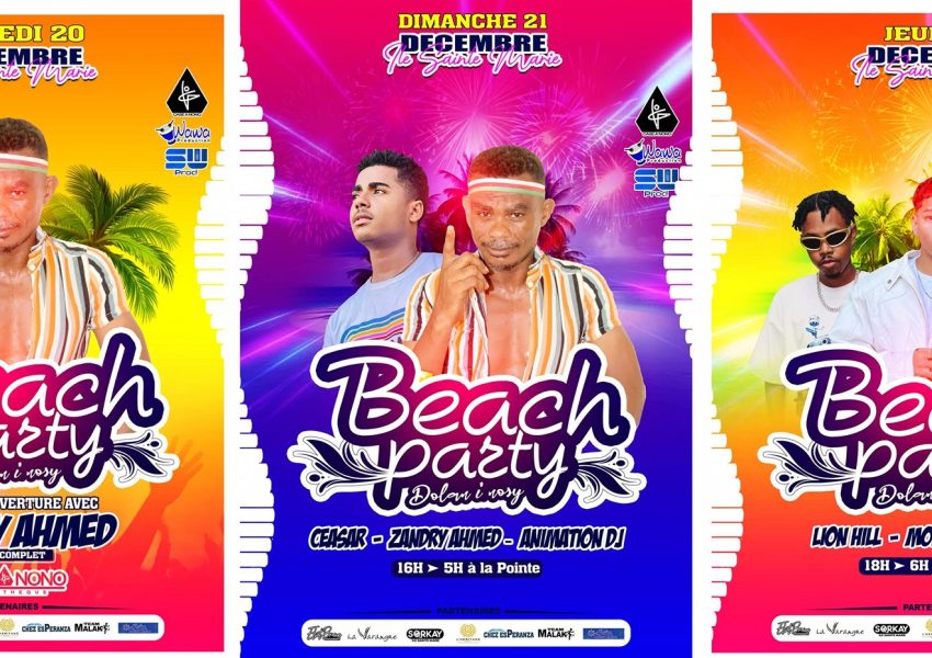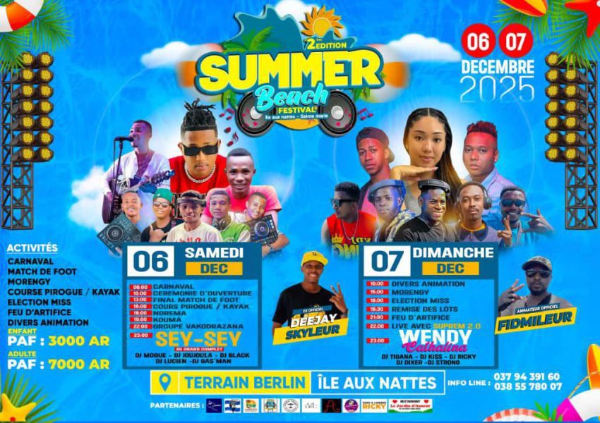 Date et Heure : Du 20 au 25 Décembre 2025 Lieu : Île Sainte-Marie, Toamasina Prix : À propos de l’événement : 🎉 BEACH PARTY – DOLAN’I NOSY 🎉 🌴 Édition Décembre – Sainte-Marie 🌴 🔥 PROGRAMME OFFICIEL 🔥📍 SAMEDI