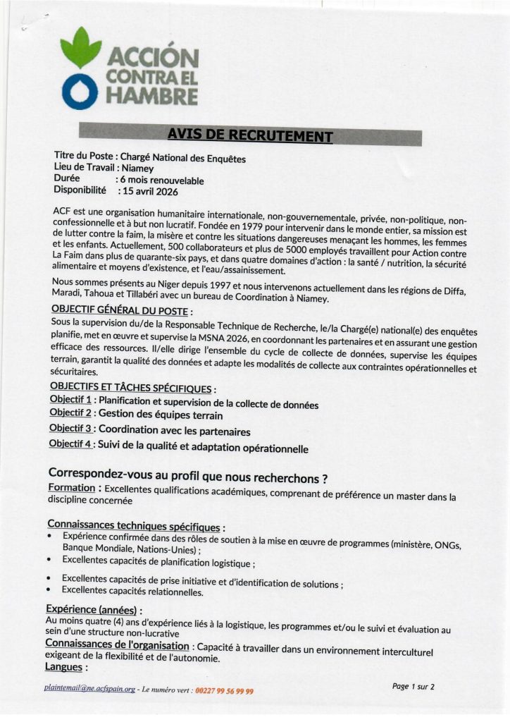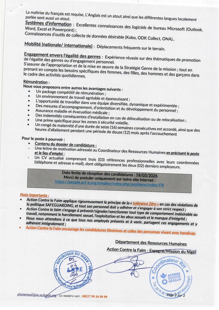 Date de dépôt des candidatures : Mercredi 18 Mars 2026