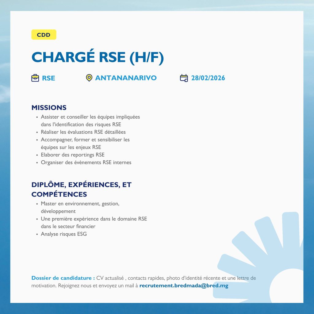 📩 Rejoignez-nous dès aujourd’hui en envoyant votre candidature à : recrutement.bredmada@bred.mg