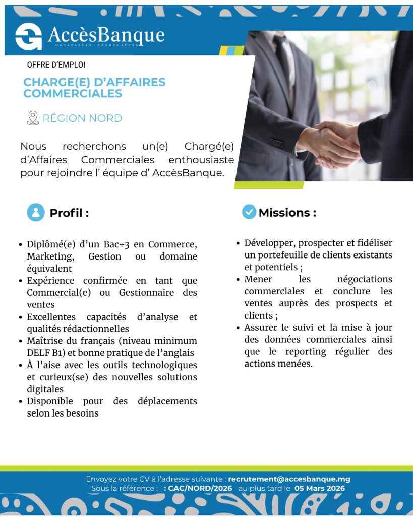 📩Envoyez vos candidature à : recrutement@accesbanque.mg