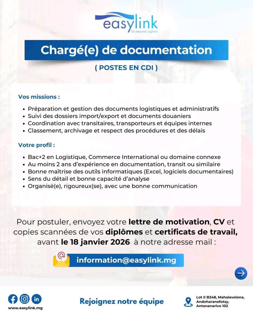 📩 Envoyez votre CV à : information@easylink.mg et mettez en copie hello@easylink.mg