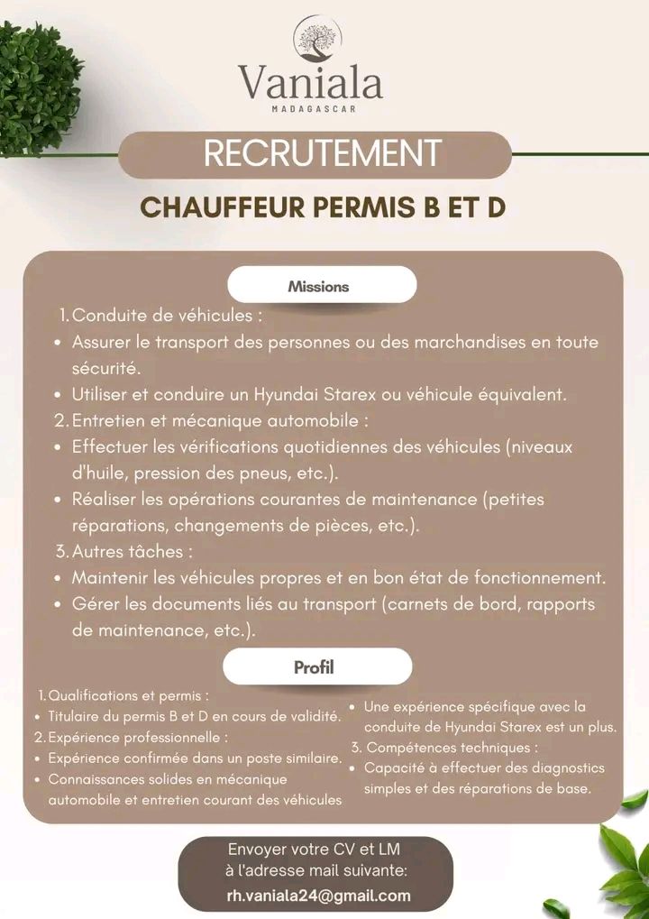 👉 Pour l’entretien, il est préférable d’habiter aux alentours de Vontovorona afin de faciliter les déplacements et la ponctualité.