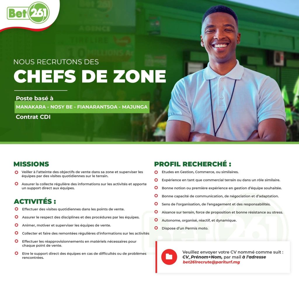 Envoyez votre CV à bet261recrute@pariturf.mg