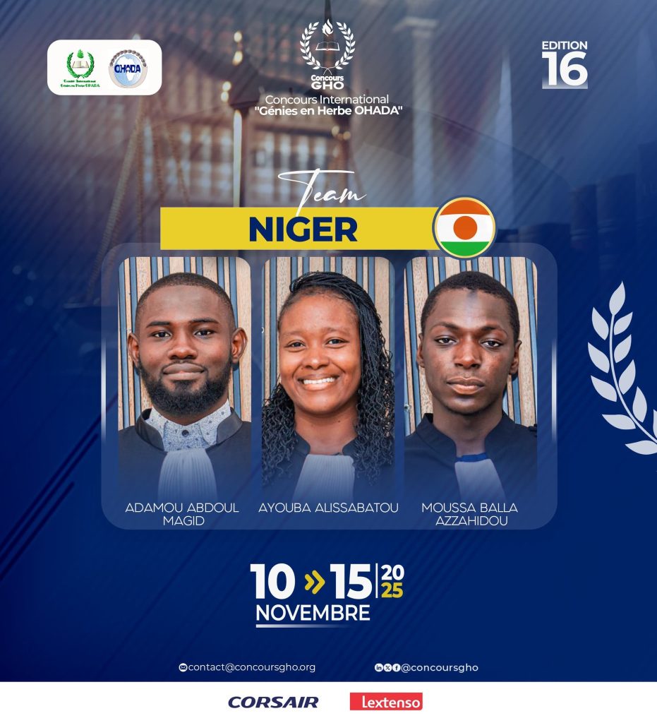 Le trio nigérien est à l’assaut du deuxième sacre lors de cette 16ème édition du Concours International “Génies en Herbe OHADA” du 𝟭𝟬 𝗮𝘂 𝟭𝟱 𝗻𝗼𝘃𝗲𝗺𝗯𝗿𝗲 𝟮𝟬𝟮𝟱 .