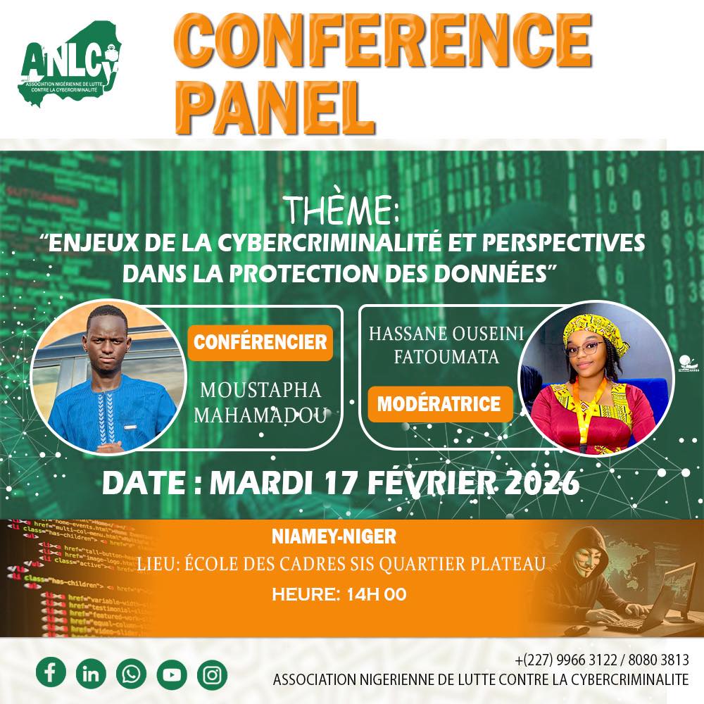 L’Association Nigérienne de Lutte contre la Cybercriminalité (ANLCY) a le plaisir de vous inviter à une conférence panel autour du thème :