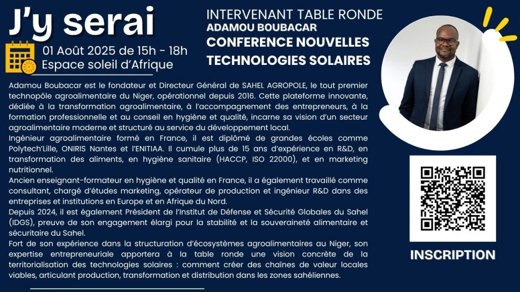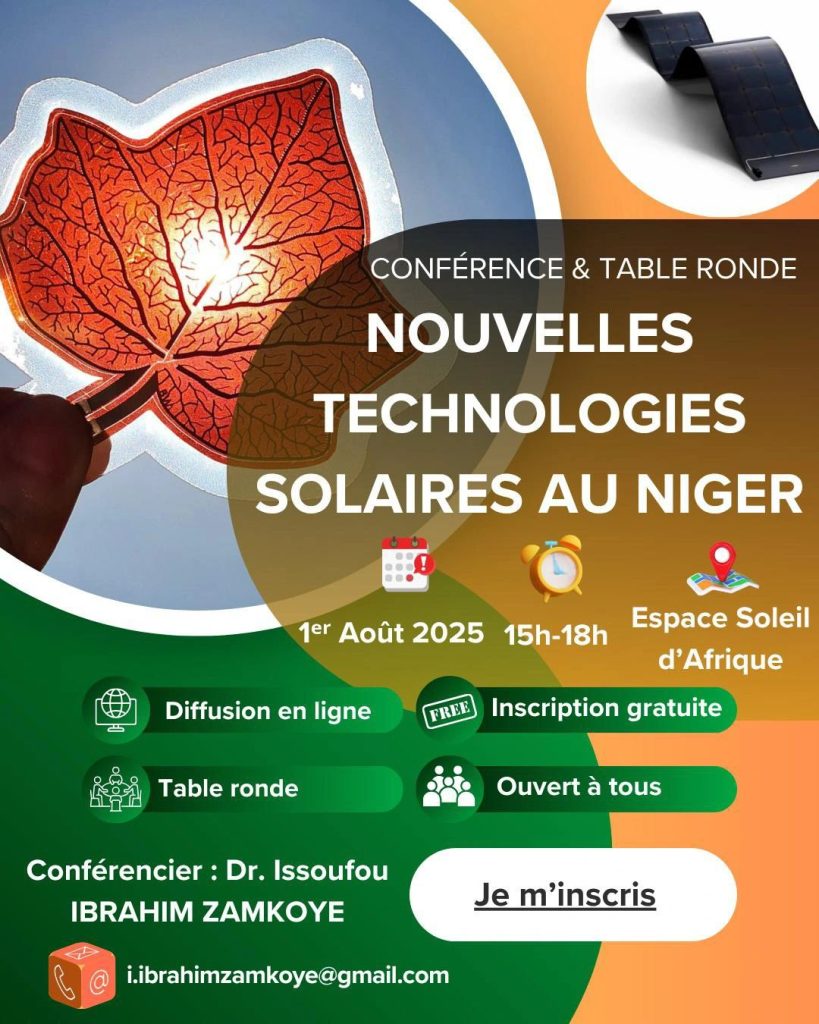 Conférencier : Dr Issoufou IBRAHIM ZAMKOYE – Spécialiste du photovoltaique organique et coloré
