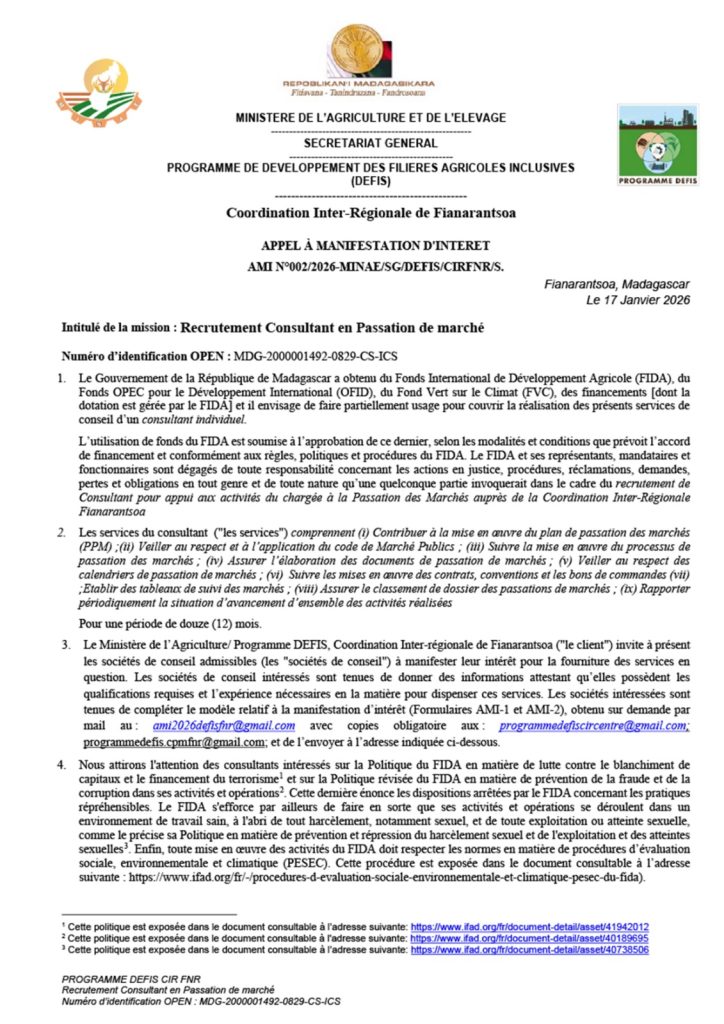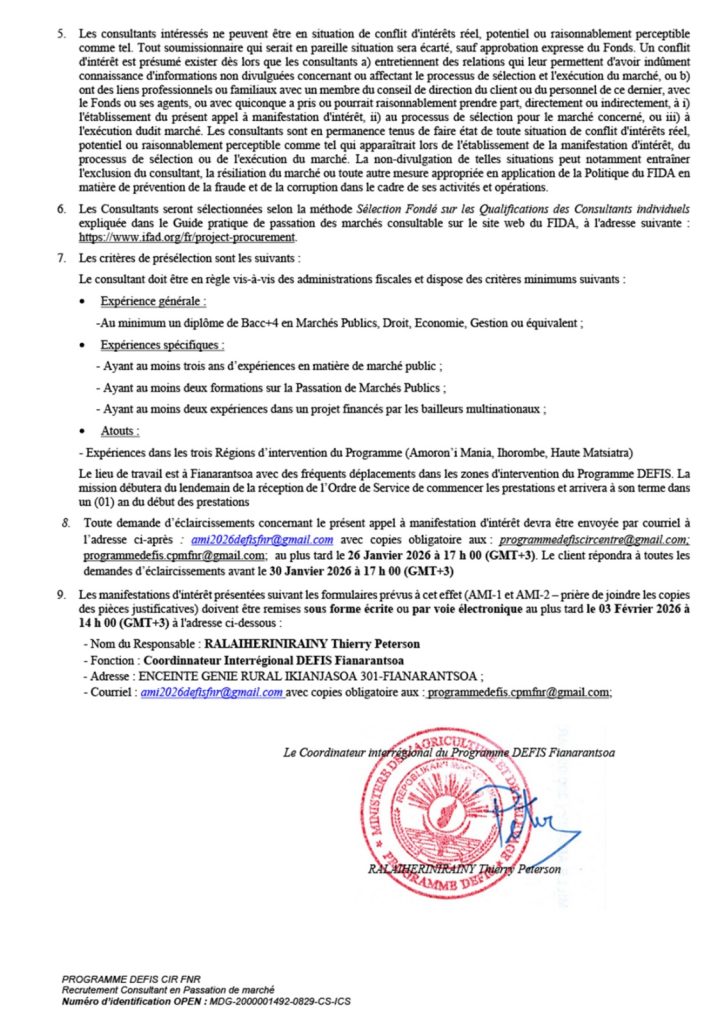 Appel à manifestation d’intérêt : « recrutement Consultant en Passation de marché »