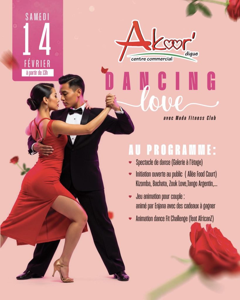 On vous invite à vivre un moment unique à deux, ce samedi 14 Février à partir de 13H autour d’une animation Danse de couple à Akoor Digue❤️