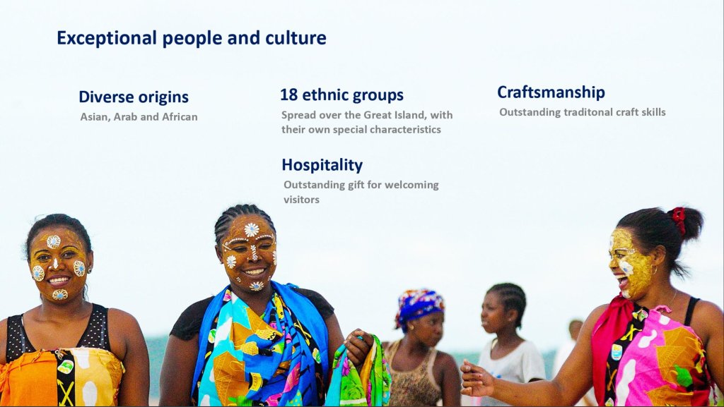 Surnommée l’île rouge pour ses paysages singuliers, il est un carrefour d'accueil et de migration, d’histoires, de traditions et de valeurs profondément enracinées. Ses traditions, ses valeurs et son organisation sociale reflètent une manière de vivre unique, où l’équilibre entre modernité et respect des coutumes ancestrales tient une place prépondérante.