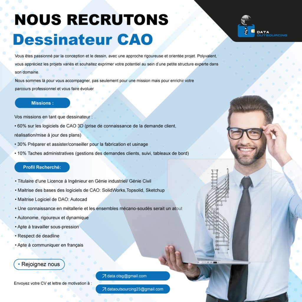 ✅ NOUS RECRUTONS — DESSINATEUR CAO (CDI)