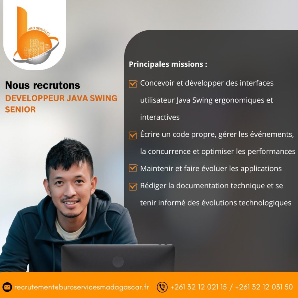 Expérience significative (minimum 2-3 ans) en développement d’applications de bureau avec Java Swing.