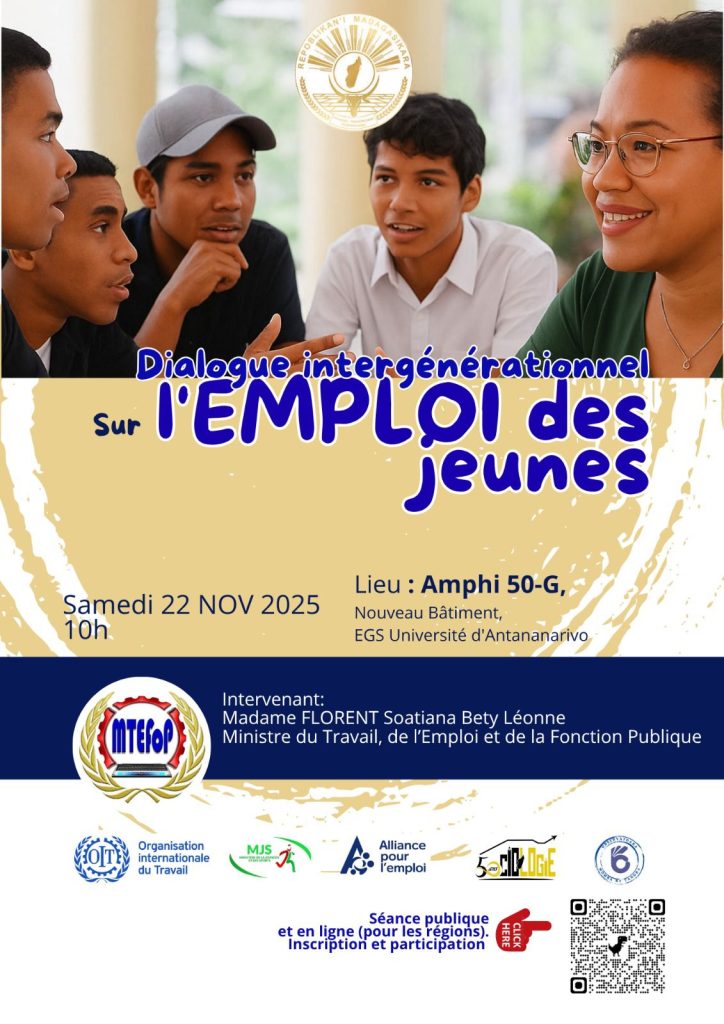 Venez participer à la discussion commune des générations avec Mme FLORENT Soatiana Bety Léonne – Ministre du Travail, de l’Emploi et des Travaux Publics.