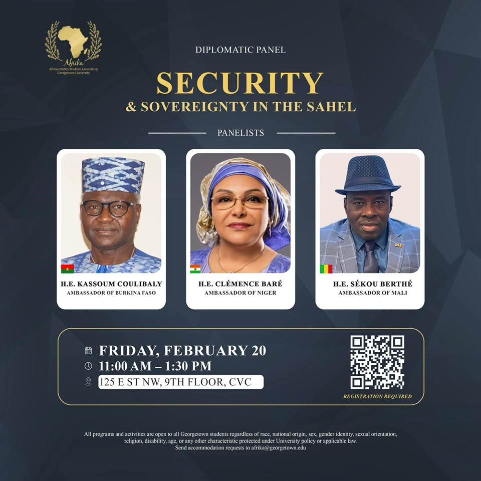 Les étudiants en sciences politiques de l’université de Georgetown (Washington DC.), s’intéressent aux pays membres de la Confédération AES. Ce vendredi 20 février 2026 les 3 Ambassadeurs dont SE Kassoum Coulibaly, vont échanger autour de la sécurité et la souveraineté au Sahel.