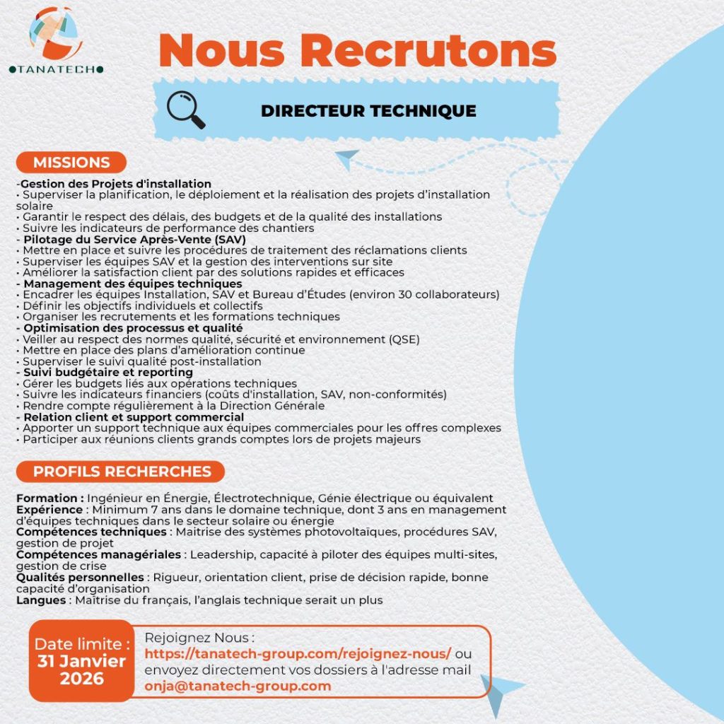 📩 Envoyez votre CV à : onja@tanatech-group.com