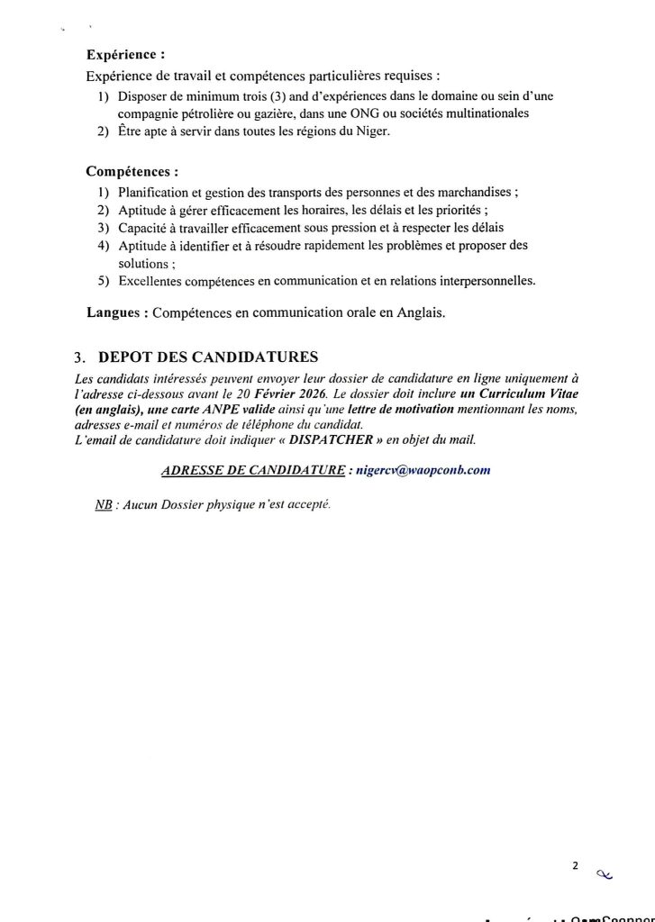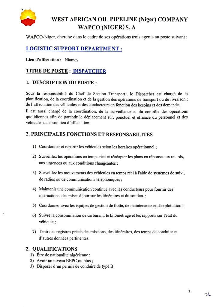 TITRE DE POSTE: DISPATCHER