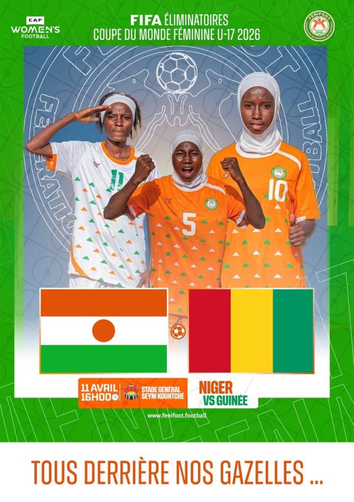 La Fédération Nigérienne de Football invite l’ensemble du public nigérien, à se mobiliser massivement pour soutenir nos Gazelles du U17 dames, engagées dans les éliminatoires de la Coupe du Monde Féminine U17, Maroc 2026.