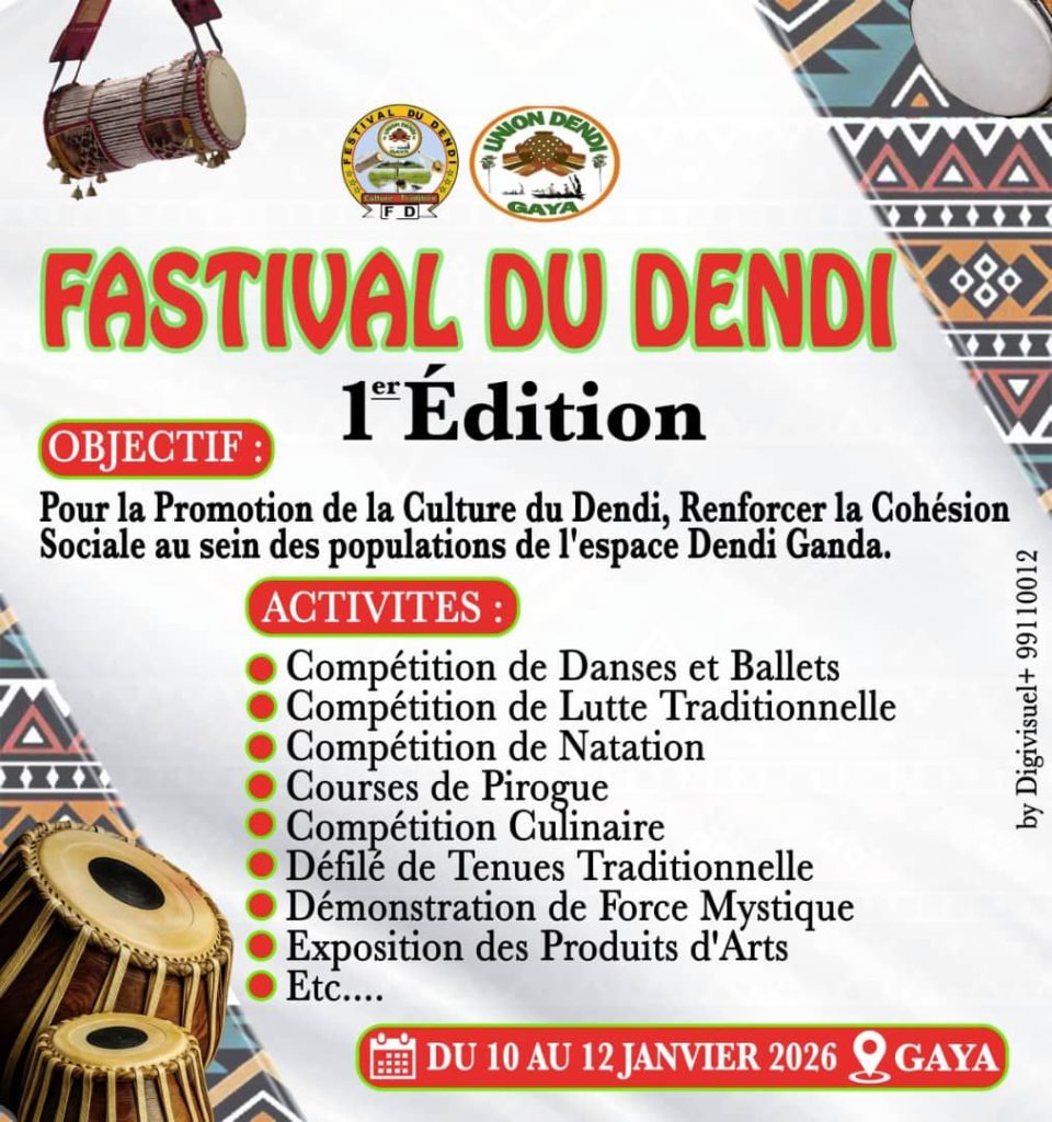 Du 10 au 12 janvier 2026, la ville de Gaya vibrera au rythme des traditions avec le tout premier Festival du Dendi.