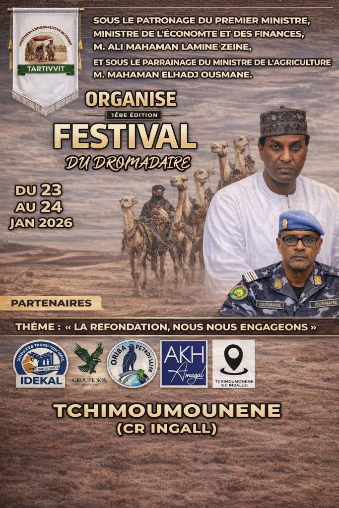 C’est avec une grande joie et une immense fierté que nous vous invitons à la première édition du festival du dromadaire, organisé par la Fédération Ensemble pour l’Élevage (FEEL-TARTIYT) à Tchimoumounène, les 23 et 24 janvier 2026.