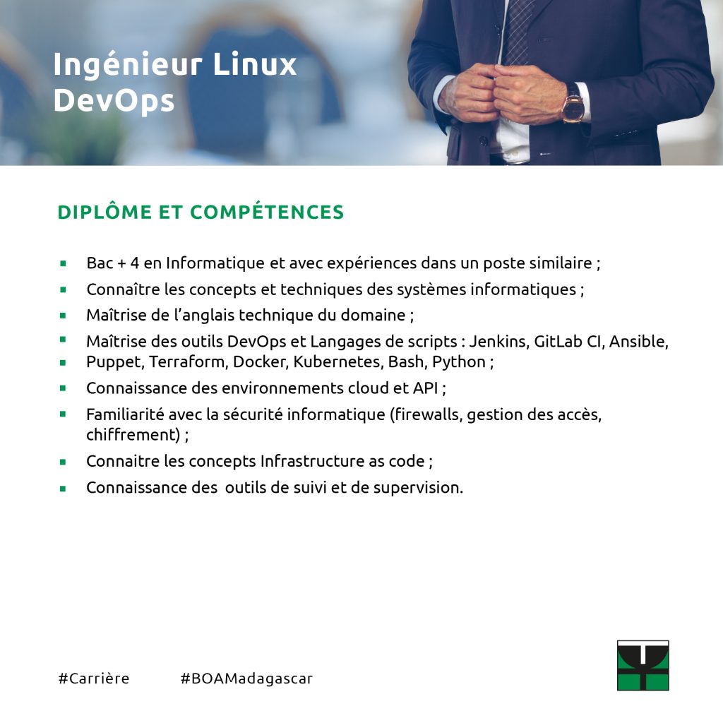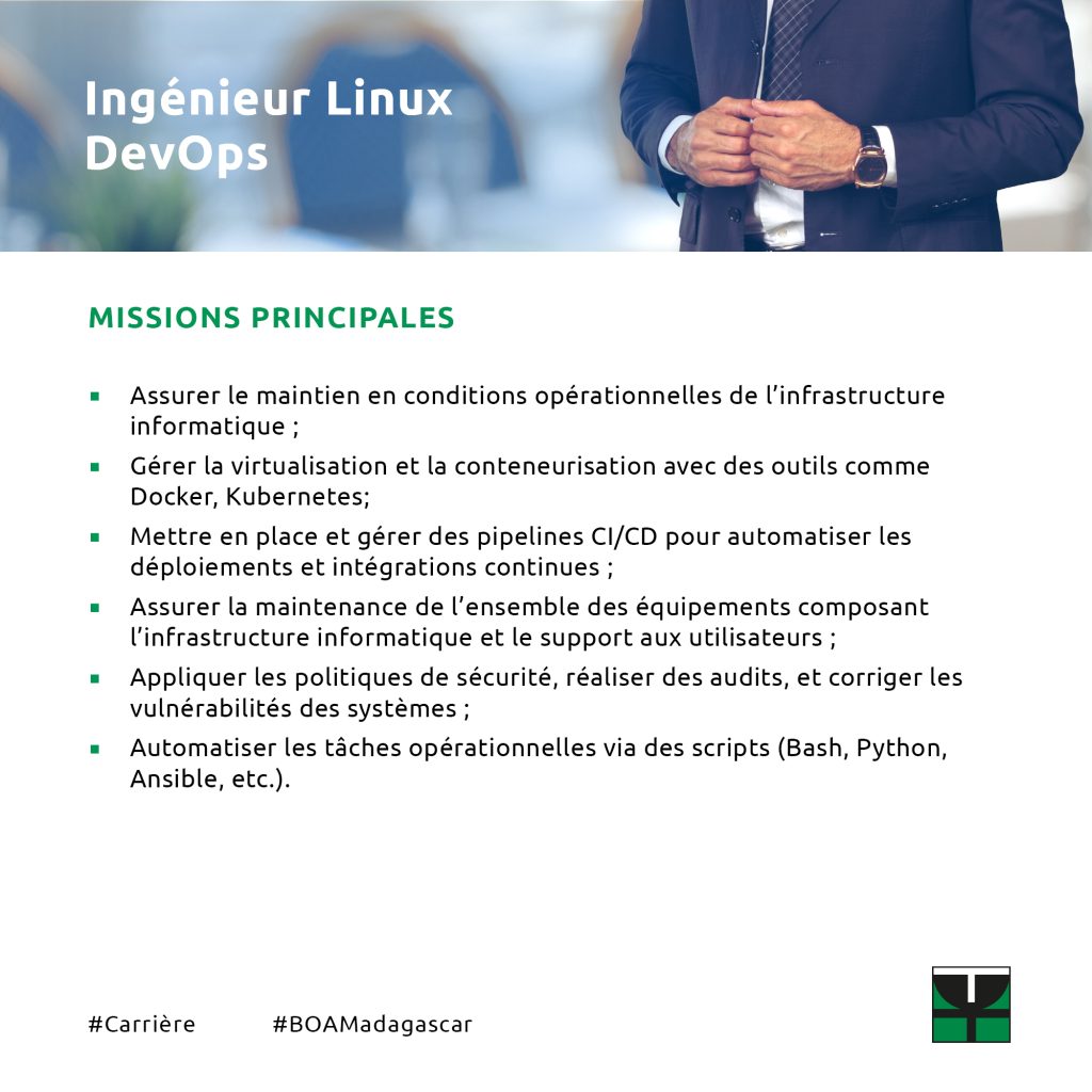 BOA-MADAGASCAR recrute un(e) Ingénieur Linux DevOps.