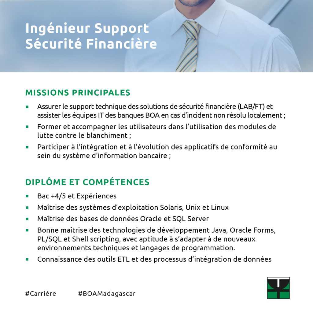 Envoyez votre candidature à : recrutement@boa.mg