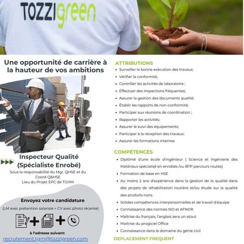 📧Email : Envoyez votre dossier de candidature (LM + CV avec photo récente ) à recrutement.tgm@tozzigreen.com