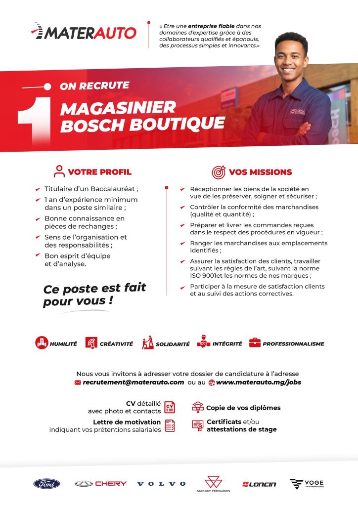 #Materauto#Recrutement#OpportunitéDeCarrière#assistantadministratif#Locationdevéhicules#Magasinier#BoschMaterauto