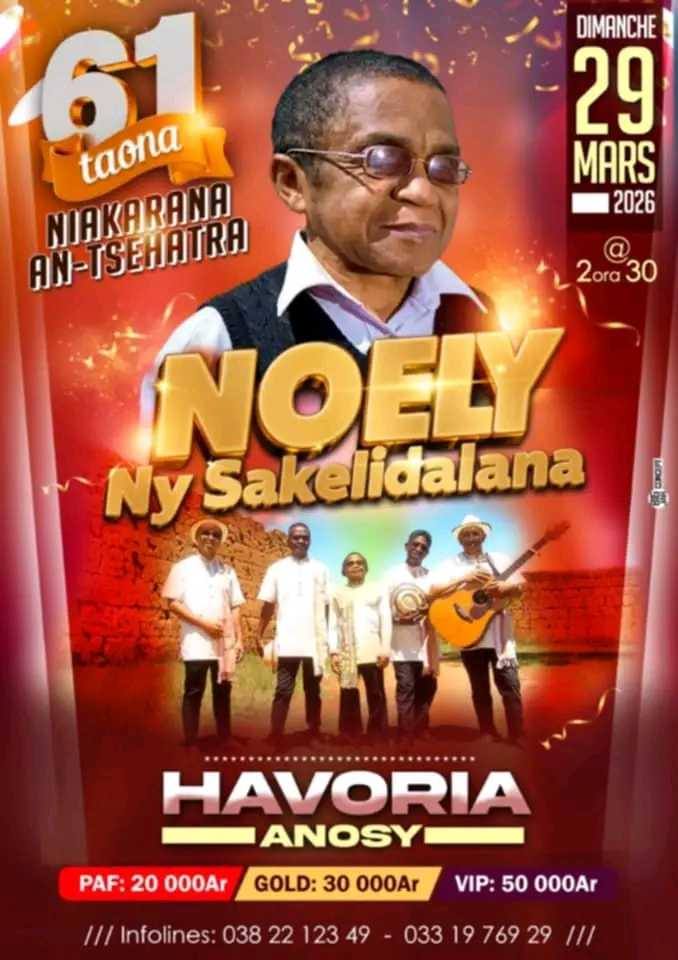 Oui grand frère Noely a grandi. Nous avons besoin du soutien de nos fans pour célébrer les 61 ans qu’il était sur la scène de #Noely. Un spectacle qu’il va jouer avec le groupe Ny Sakelidalana le 29 mars à HAVORIA Anosy à partir de 2h30 …