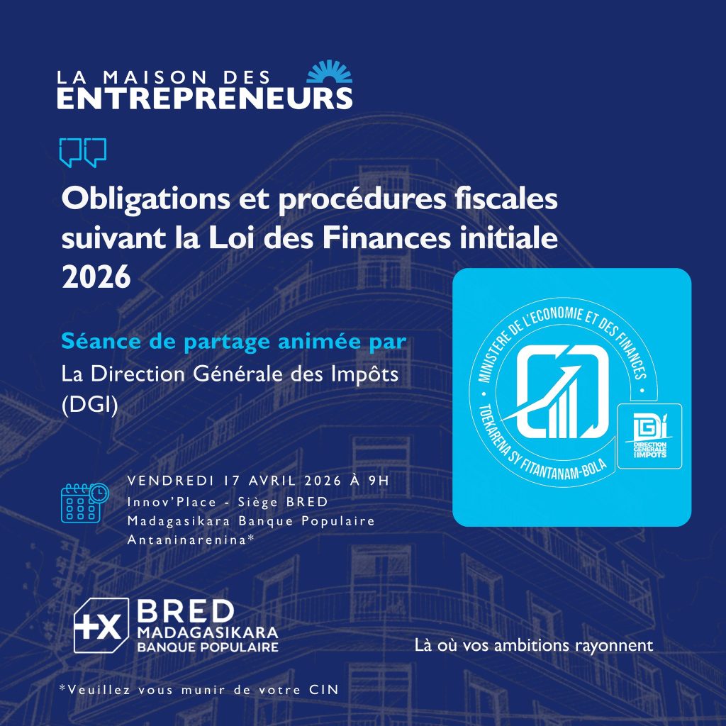 Rejoignez “La Maison des Entrepreneurs – BRED Madagasikara” pour une matinée dédiée aux :