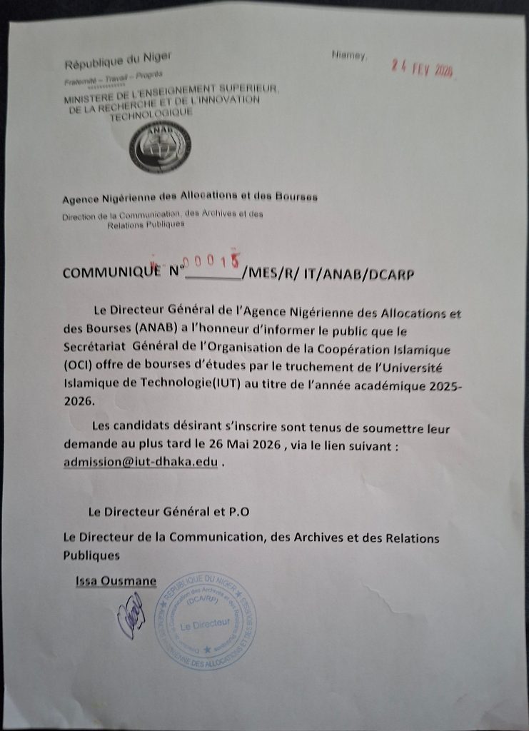 OFFRE DE BOURSE DU SECRÉTARIAT GÉNÉRAL DE L’ORGANISATION DE LA COOPÉRATION ISLAMIQUE (OCI)