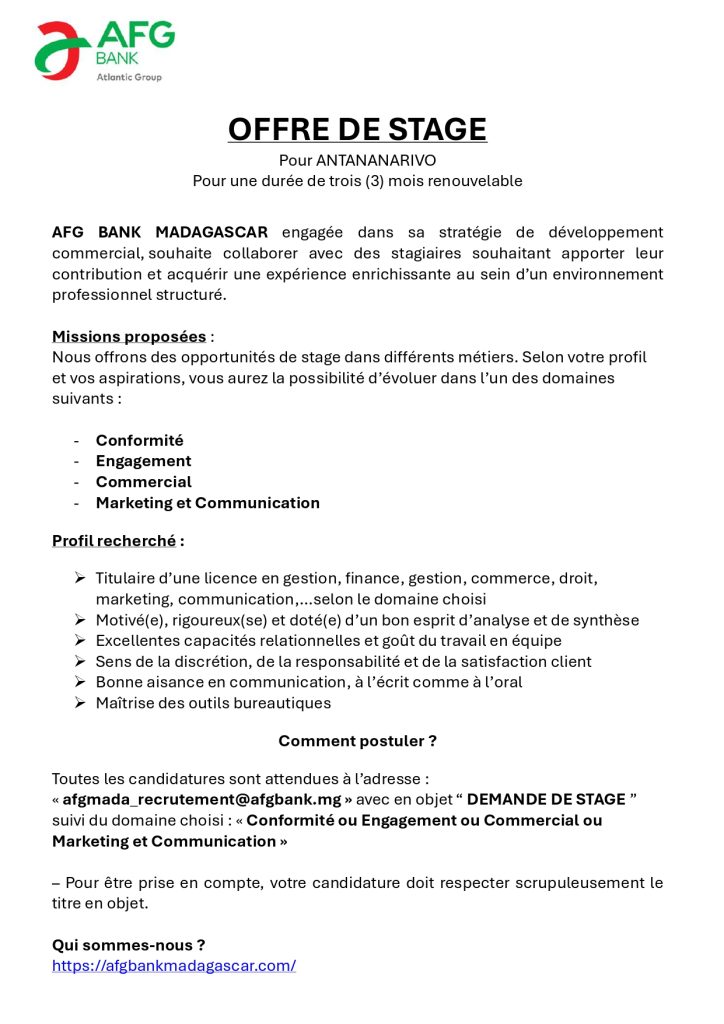 Une belle occasion de développer vos compétences et d’acquérir une expérience enrichissante dans le secteur bancaire.