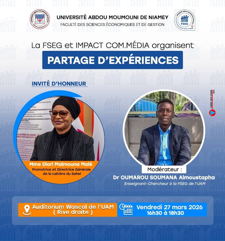La Faculté des Sciences Economiques et de Gestion (FSEG) de l’Université Abdou Moumouni (UAM) vous invite à son activité Partage d’Expériences
